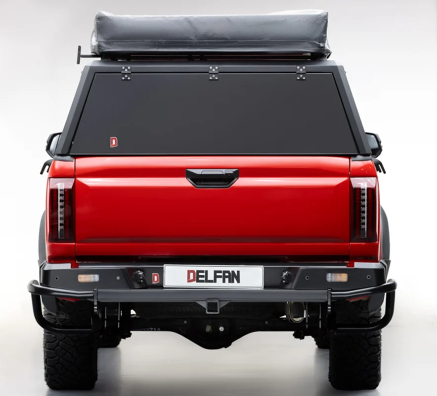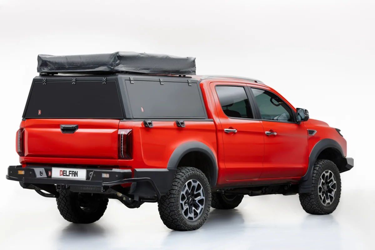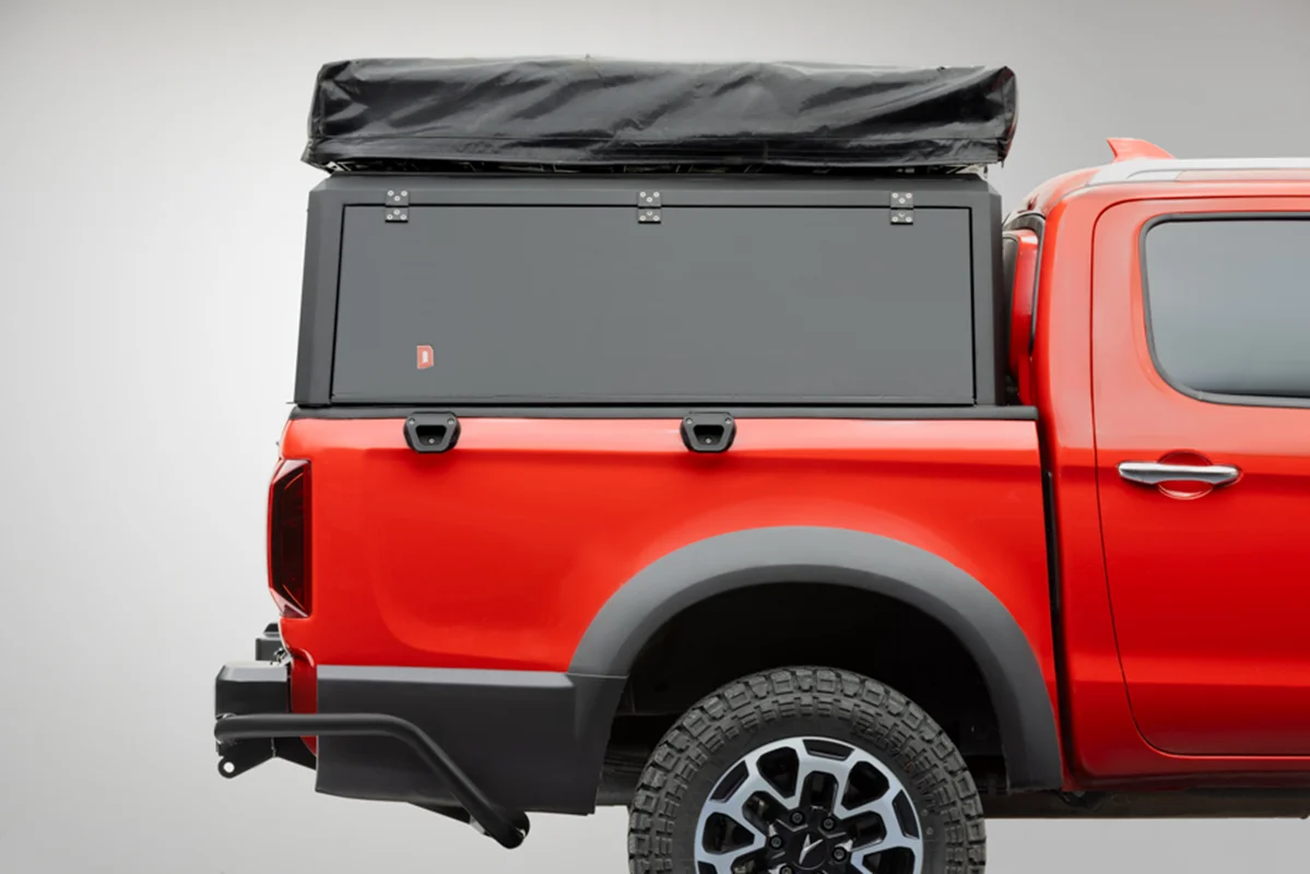 کنوپی فلزی کیامسی تی9 (اتاق عقب) با طراحی بر اساس استاندارد جهانی و کاملا مطابق با اتاقک خودرو. بدنه و لولا از جنس تماما فلزی با رنگ الکترواستاتیک برای مقاومت بیشتر. نصب آسان و اتصال پیچ و مهرهای به بدنه و کاملا مقاوم در برابر آب و دارای ریل مخصوص (روف ریل) برای نصب انواع باربند برای استفاده بهینه در سفرهای آفرودی و جادهای. دارای سه لولای فلزی مقاوم و قفل برقی. با دو جک پمپی 200 نیوتن روی هر درب با توان بالا برای بالا نگه داشتن دربها و استفاده بهینه با توجه به نیاز. (همراه با خدمات پس از فروش و تامین قطعات)
